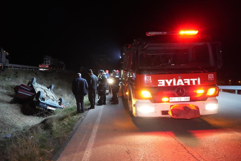 Kaza, Kırıkkale Çevrealtı Caddesi'nde yaşandı. S.B. yönetimindeki 71 FE 400 plakalı otomobil, sürücüsünün direksiyon hakimiyetini kaybetmesi sonucu yoldan çıktı. Savrulan otomobil takla atarak şarampole devrildi.