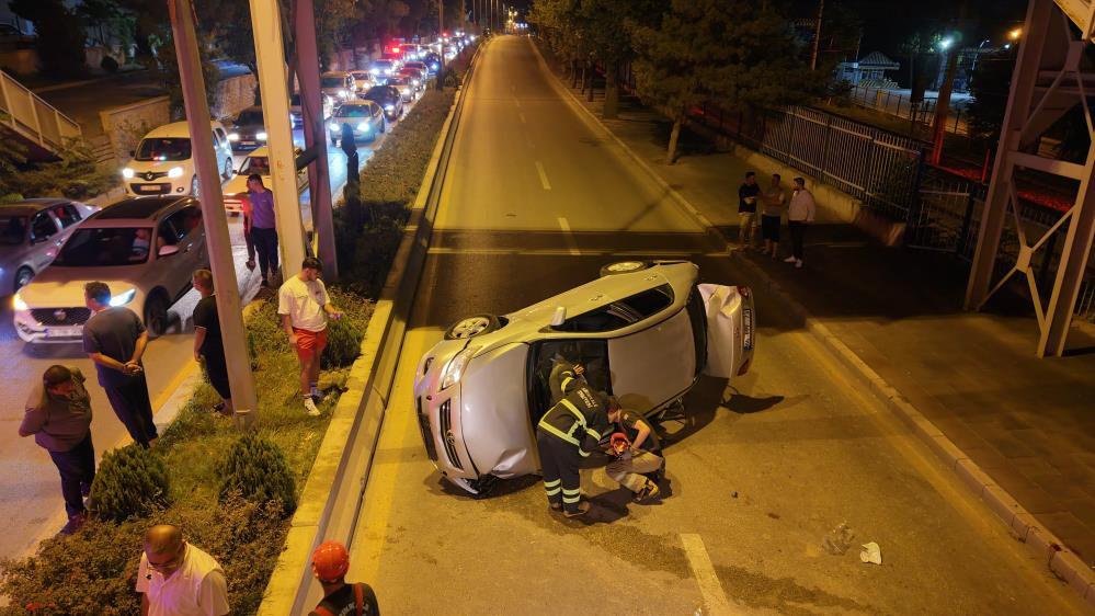 Kırıkkale Millet Bulvarı’nda, gece saatlerinde, 20 yaşındaki M.H.Z.’nin kullandığı 06 PPF 73 plakalı Toyota, sürücüsünün direksiyon kontrolünü kaybetmesiyle yaya üst geçidinin merdiven korkuluklarına savruldu. Takla atan araç adeta demir yığınına dönerken, sürücü M.H.Z. ile yolcular M.A.A. (19) ve Z.S. (19) yaralandı.