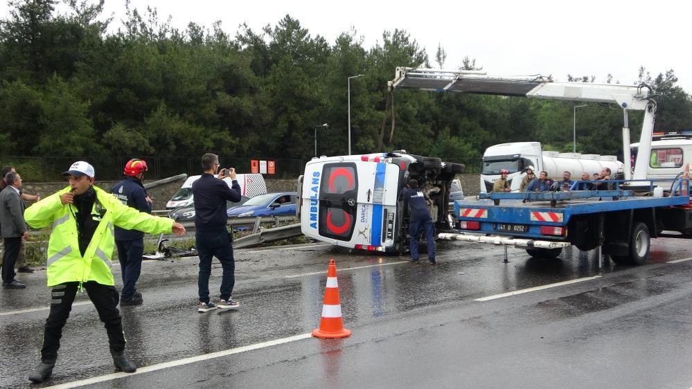 Tuzla’da, D-100 Karayolu Ankara istikameti İstasyon Mahallesi mevkiinde, saat 12.30 sıralarında korkutucu bir kaza meydana geldi. Hasta nakil ambulansı, iddiaya göre sürücüsünün direksiyon hakimiyetini kaybetmesi sonucu bariyerlere çarparak yan yattı. Araçta bulunan hamile bir kadın ile iki sağlık personeli kazada hafif yaralandı.