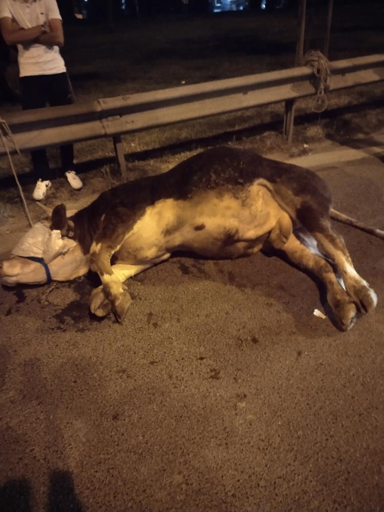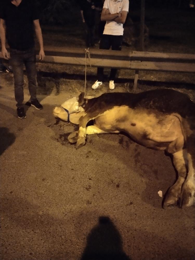 Ümraniye Şile Otoyolu Çekmeköy istikametinde, 23.00 sıralarında dramatik bir olay yaşandı. Açık kasa kamyonette seyir halinde olan bir kurbanlık dana, ipini kopararak yola atladı. Ani hareketle otoyola düşen dananın sağ ön ayağının kırıldığı belirlendi.