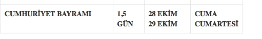 2016 yılında 29 Ekim hangi güne denk geliyor? Bu sene 28 Ekim okullar tatil olacak mı? Binlerce kişi bu sorunun yanıtını arıyor. Bu sene 29 Ekim cumartesi gününe denk geliyor. Merak edilen diğer bir soru ise 28 Ekim Cuma günü okullar yarım gün mü olacak? Daha önceki senelerde 29 Ekim'den önceki günü yarım günü tatil yapan MEB'den henüz resmi bir açıklama yok. İlerleyen günlerde bu sorunun cevabının netlik kazanması bekleniyor.Daha önceki senelerde 29 Ekim'den önceki günü yarım günü tatil yapan MEB'den henüz resmi bir açıklama yok. İlerleyen günlerde bu sorunun cevabının netlik kazanması bekleniyor. 29 Ekim cumartesi günü ise resmi törenler yapılacak. 31 Ekim pazartesi günü ise memurlar ve özel sektör çalışanları mesailerine devam edecekler.