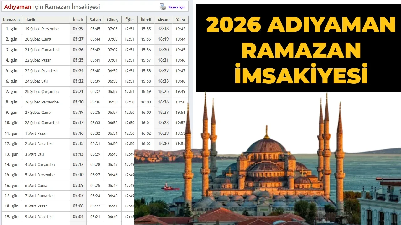 Adıyaman sahur ve iftar vakitleri, takvim olarak duyuruldu. Genç, çocuk her yaştan müslüman bu gece ilk sahularına uyanacak. İmsak vaktine kadar sahurlarını yapacak müslümanlar iftar saatlerine göre hareket edecek. Ramazan ayında kılınacak nafile namazı, zikir, sadaka ve bütün nafile ibadetlerine verilen sevap, başka aylarda yapılan farzlar gibidir. Bu ayda cennet kapıları ardına kadar açık olurken müslümanların yol göstericisi Kur’an-ı Kerim bu ayda indirilmiştir. İbadetlerine özen göstererek eksiksiz yerine getirmek isteyenler ise Ramazan imsakiyesine göre hareket edecek. Adıyaman’da ilçelere göre iftar ve sahur vakitleri değişebilecek. Peki Adıyaman’da ilk iftar saat kaçta? İşte, Adıyaman 2026 Ramazan imsakiyesi…