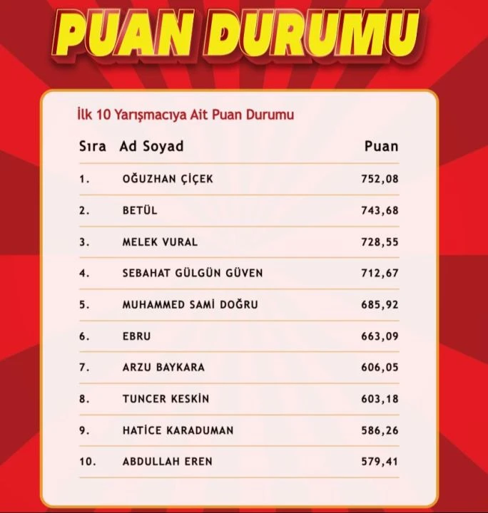 1 OCAK 2025 TARİHLİ ÇÖZEN KAZANIR’DA İLK 10’A GİREN YARIŞMACILARIN İSİMLERİ