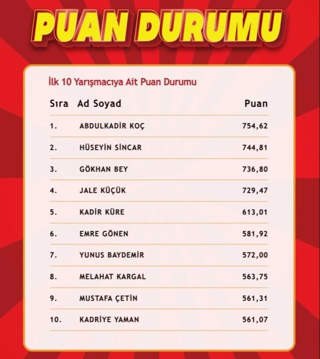 5 ŞUBAT 2025 TARİHLİ ÇÖZEN KAZANIR’DA İLK 10’A GİREN YARIŞMACILARIN İSİMLERİ