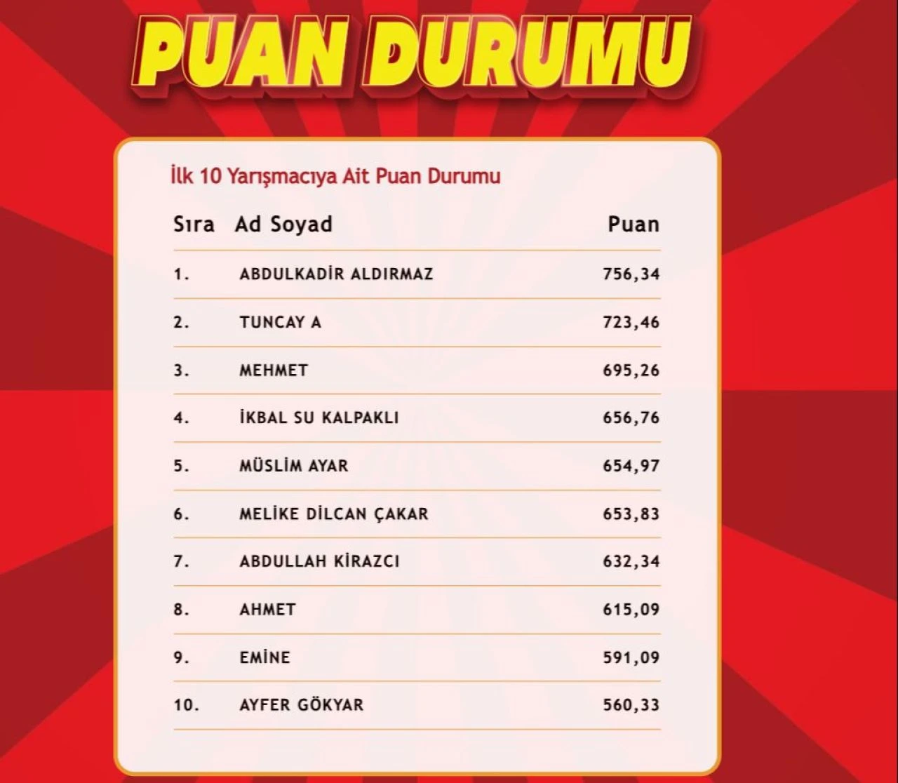 8 OCAK 2025 TARİHLİ ÇÖZEN KAZANIR’DA İLK 10’A GİREN YARIŞMACILARIN İSİMLERİ