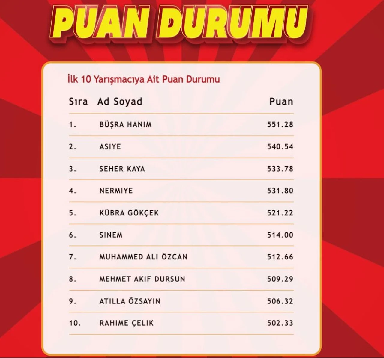 24 TEMMUZ 2024 TARİHLİ ÇÖZEN KAZANIR’DA İLK 10’A GİREN YARIŞMACILARIN İSİMLERİ