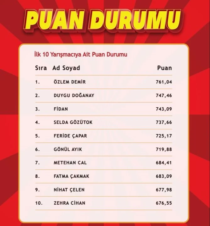 29 KASIM 2024 TARİHLİ ÇÖZEN KAZANIR’DA İLK 10’A GİREN YARIŞMACILARIN İSİMLERİ