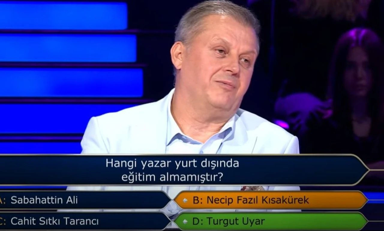 Kim Milyoner Olmak İster programında sorulan soruya yarışmacı Necip Fazıl Kısakürek cevabını verdi.