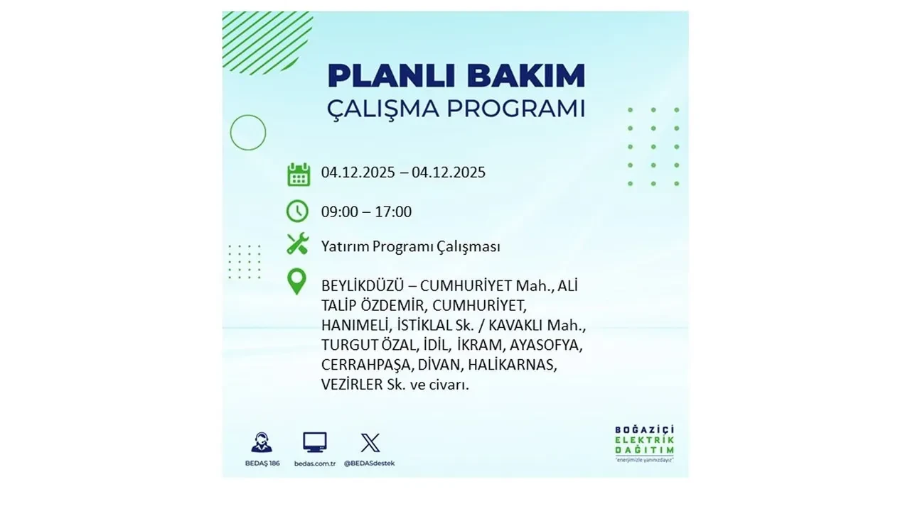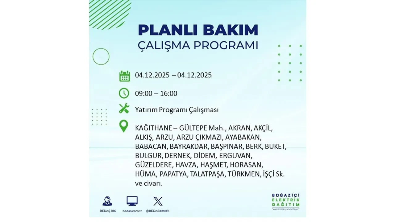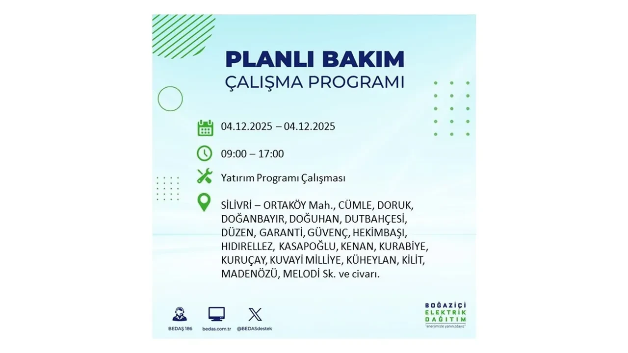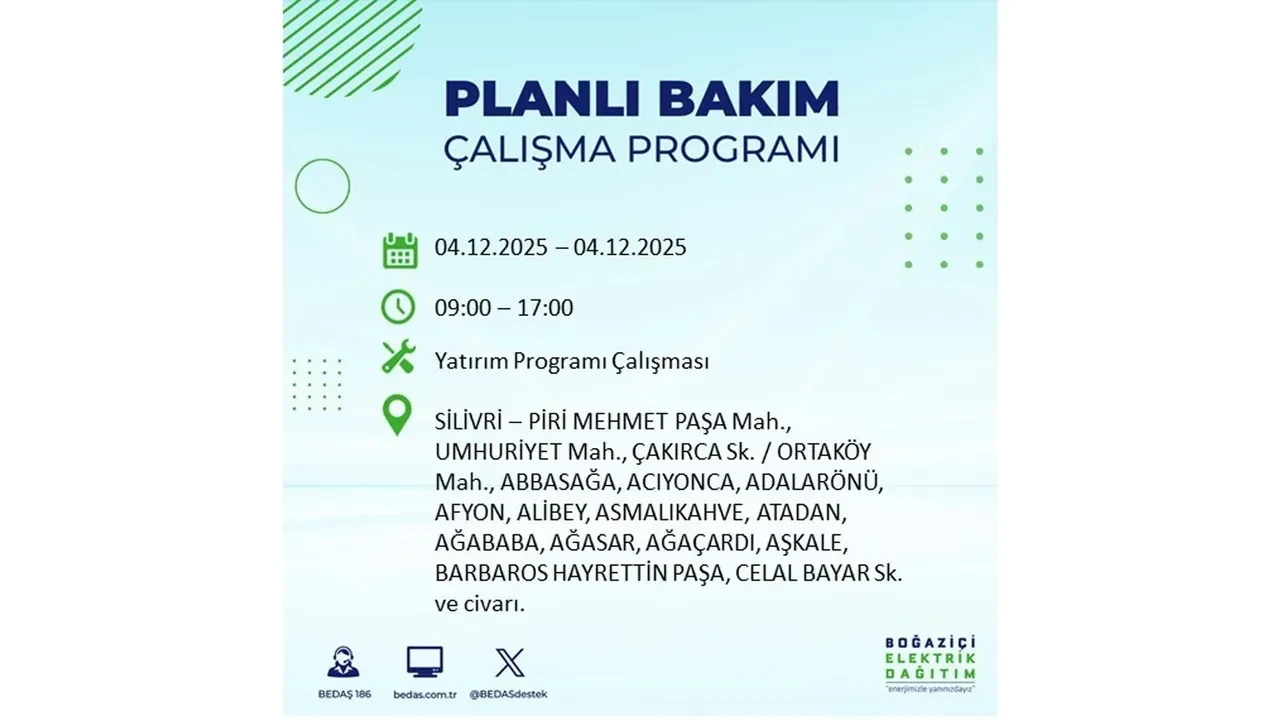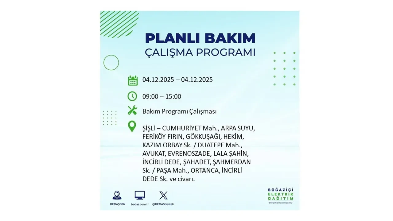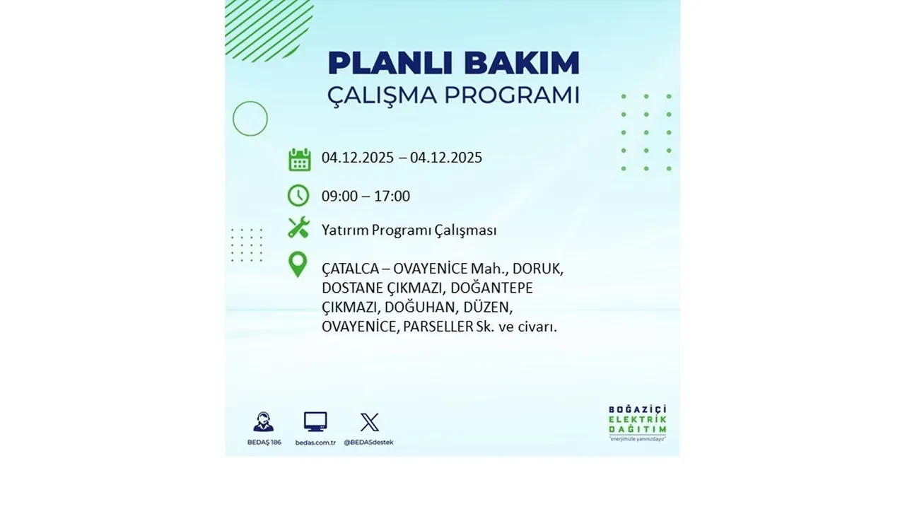 4 ARALIK 2025 İSTANBUL ELEKTRİK KESİNTİLERİ