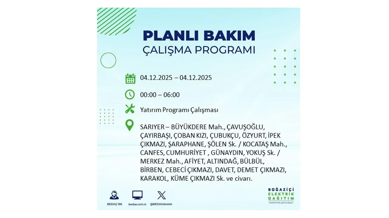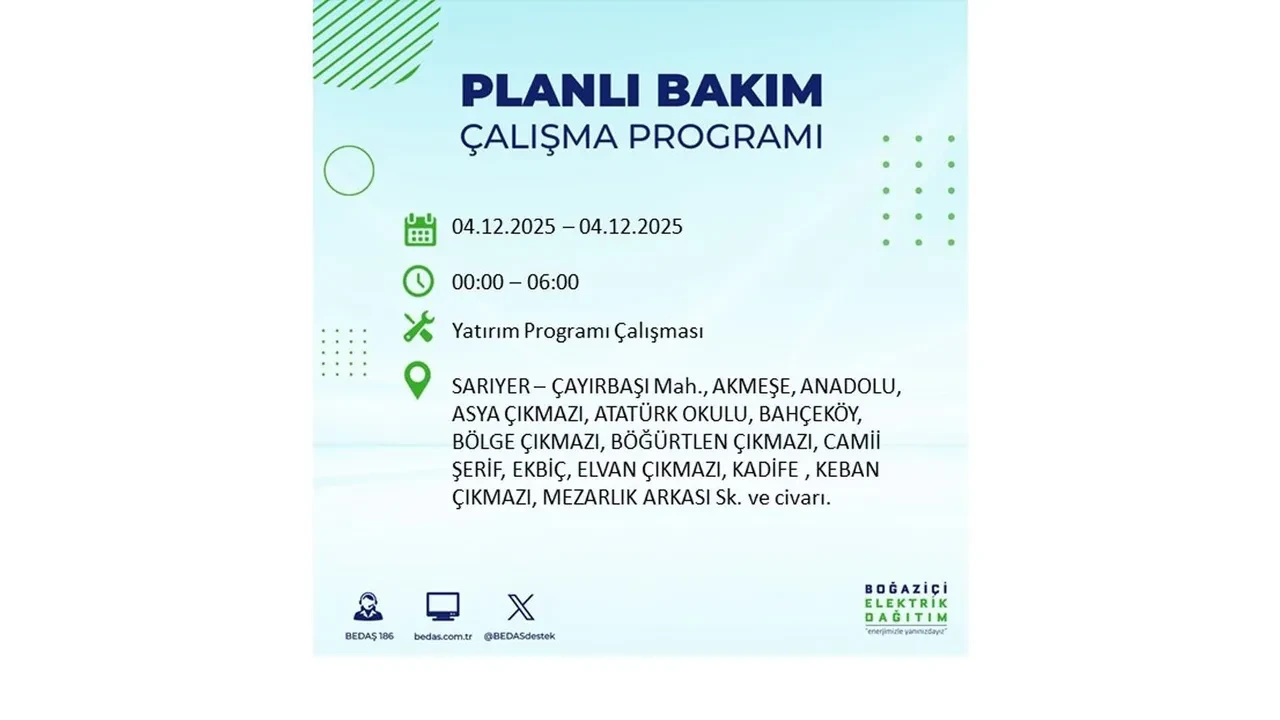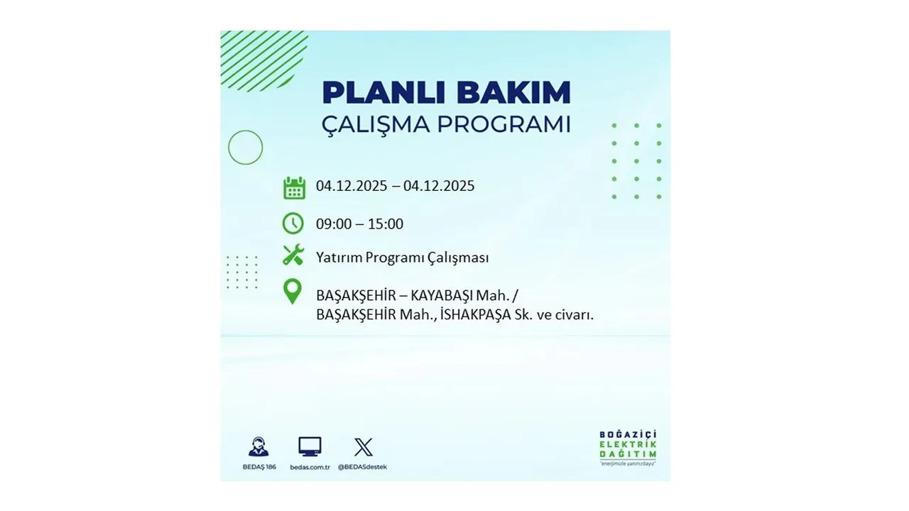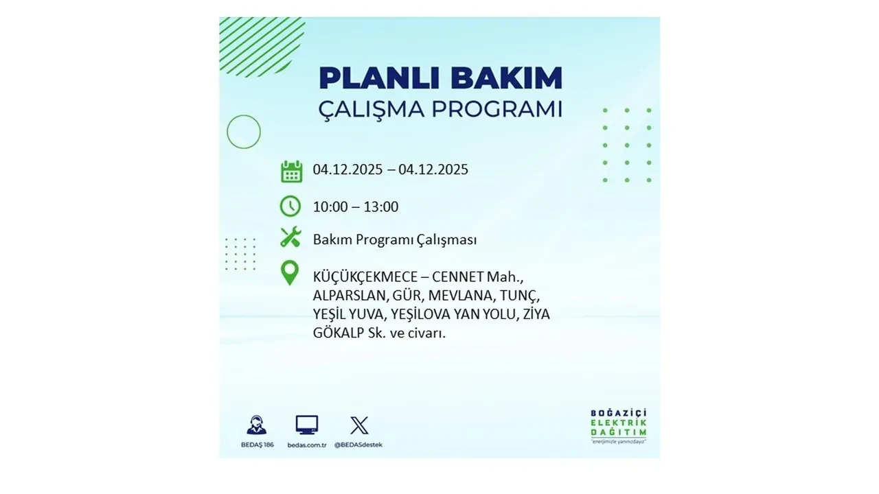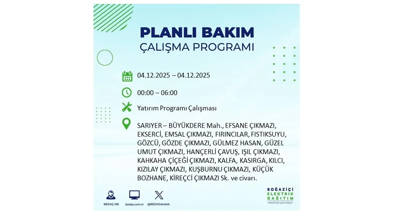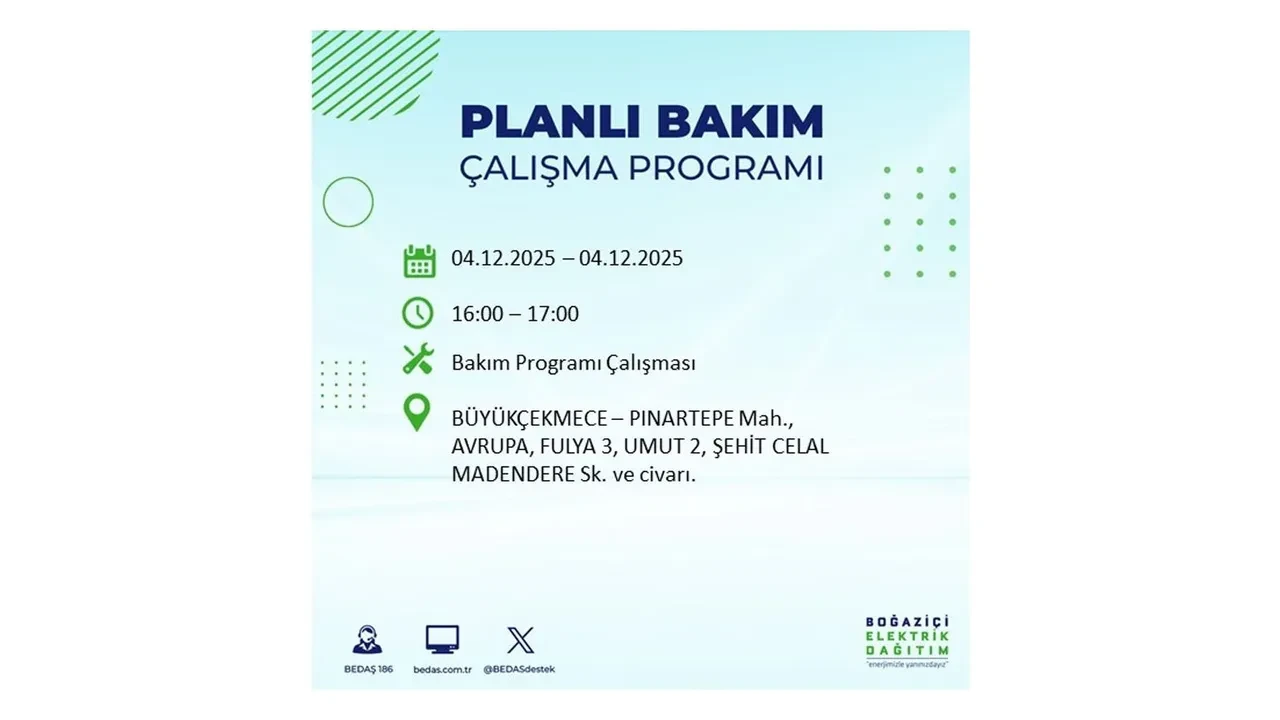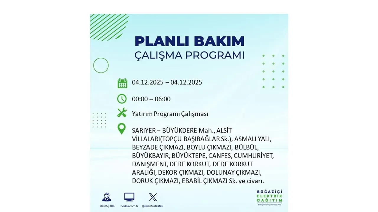 4 ARALIK 2025 İSTANBUL ELEKTRİK KESİNTİLERİ