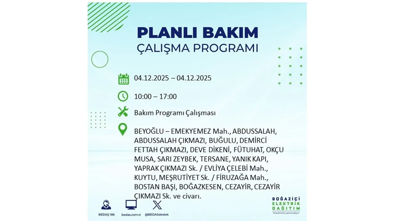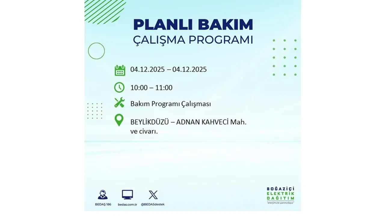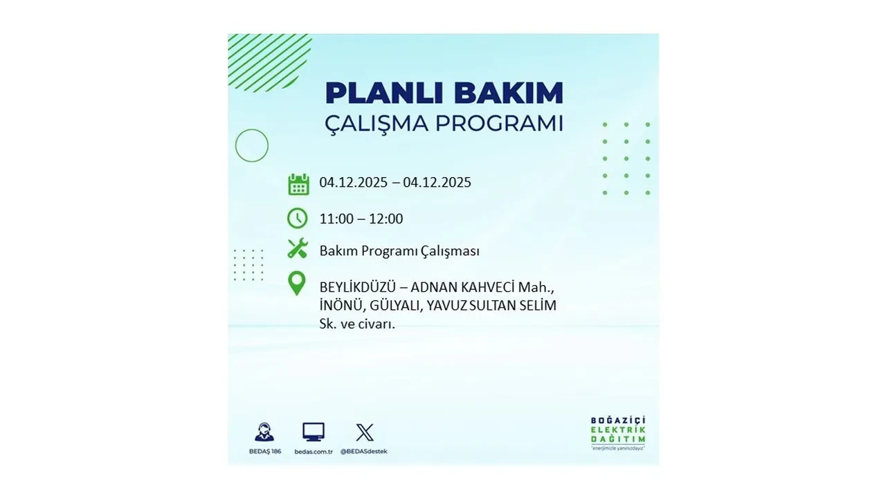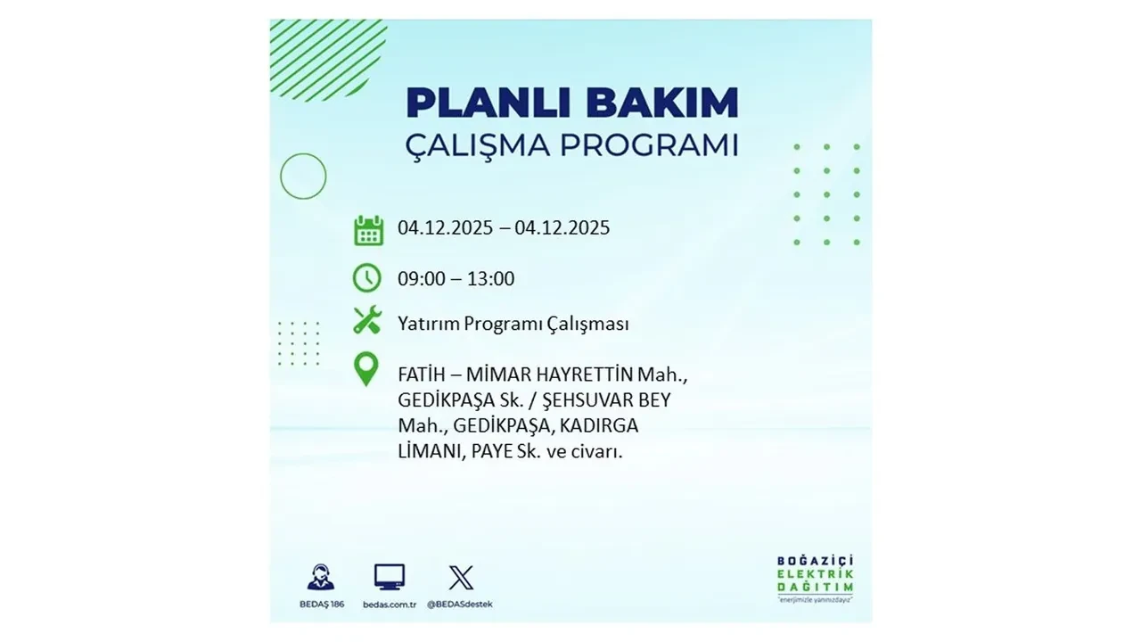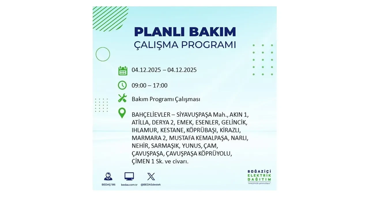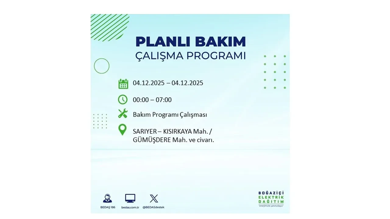 4 ARALIK 2025 İSTANBUL ELEKTRİK KESİNTİLERİ