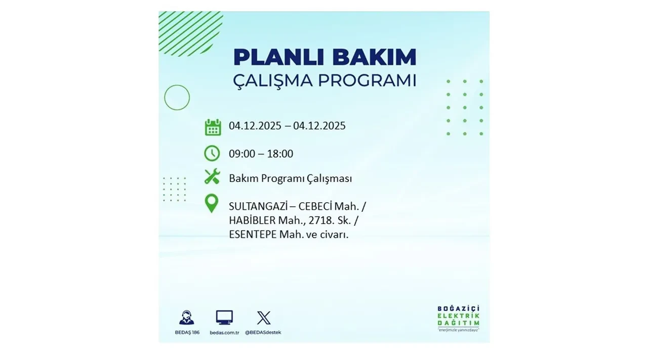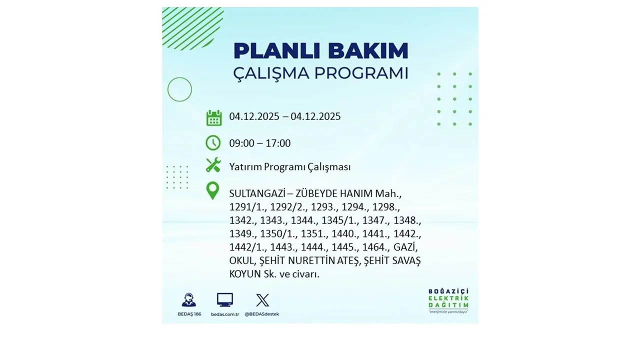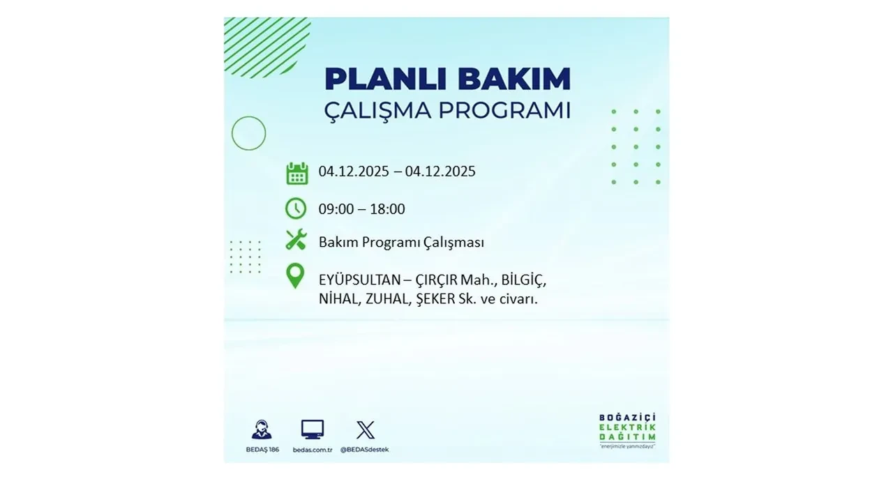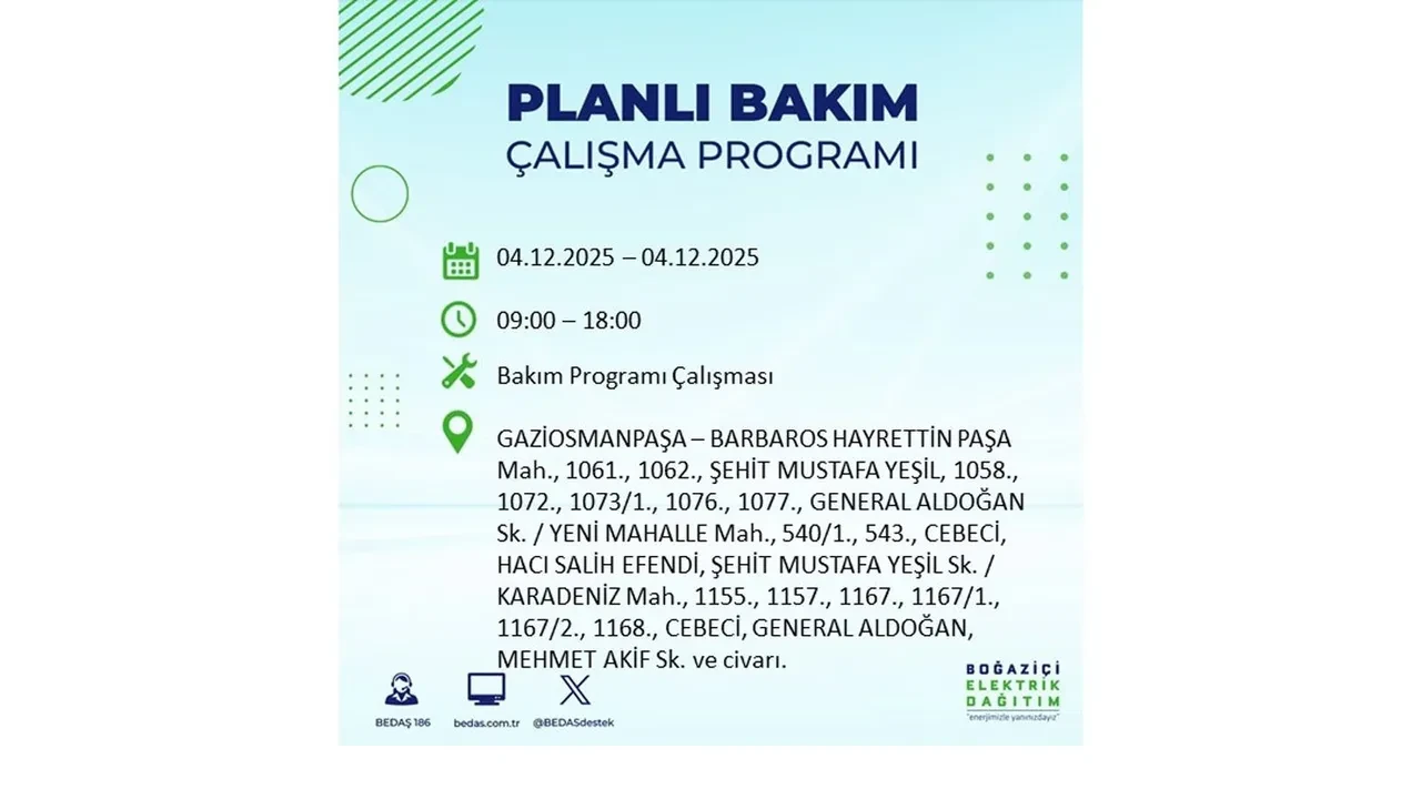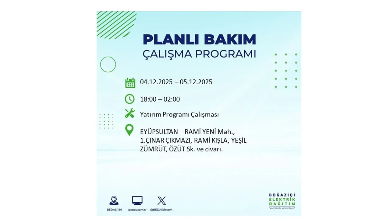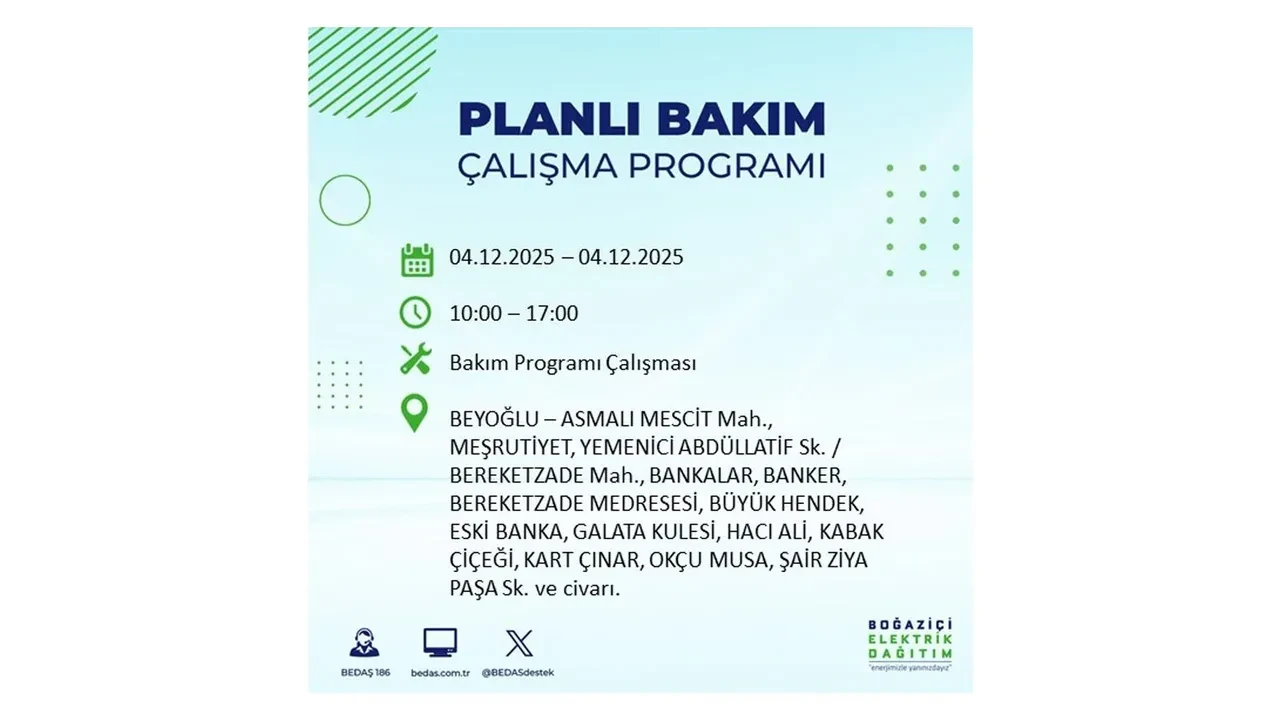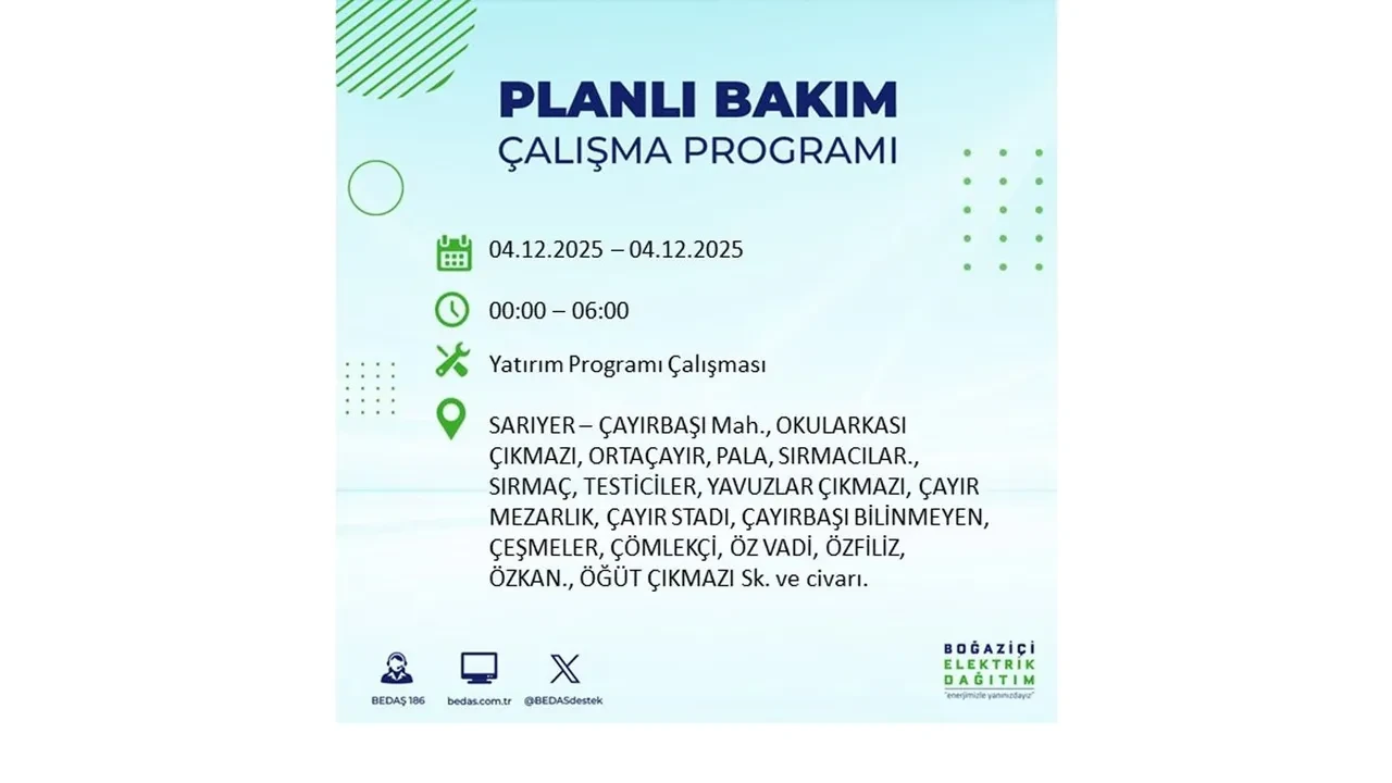 4 ARALIK 2025 İSTANBUL ELEKTRİK KESİNTİLERİ