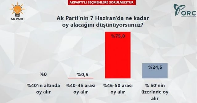 AK Parti'li seçmenlerin neredeyse tamamı 7 Haziran'da gerçekleşecek olan seçimlerde AK Parti'nin tek başına iktidar olacağını düşündüğünü söyledi.