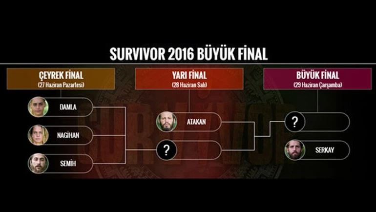 Survivor 2016'da final Kıbrıs'ta yapılacak.Kıbrıs'ta oylamalara Serkay Tütüncü finalist olarak son olarak katılacak. Atakan Arslan yarı finalde, Damla Can, Semih Öztürk ve Nagihan Karadere ilk turda SMS oylamalarına çıkacak.