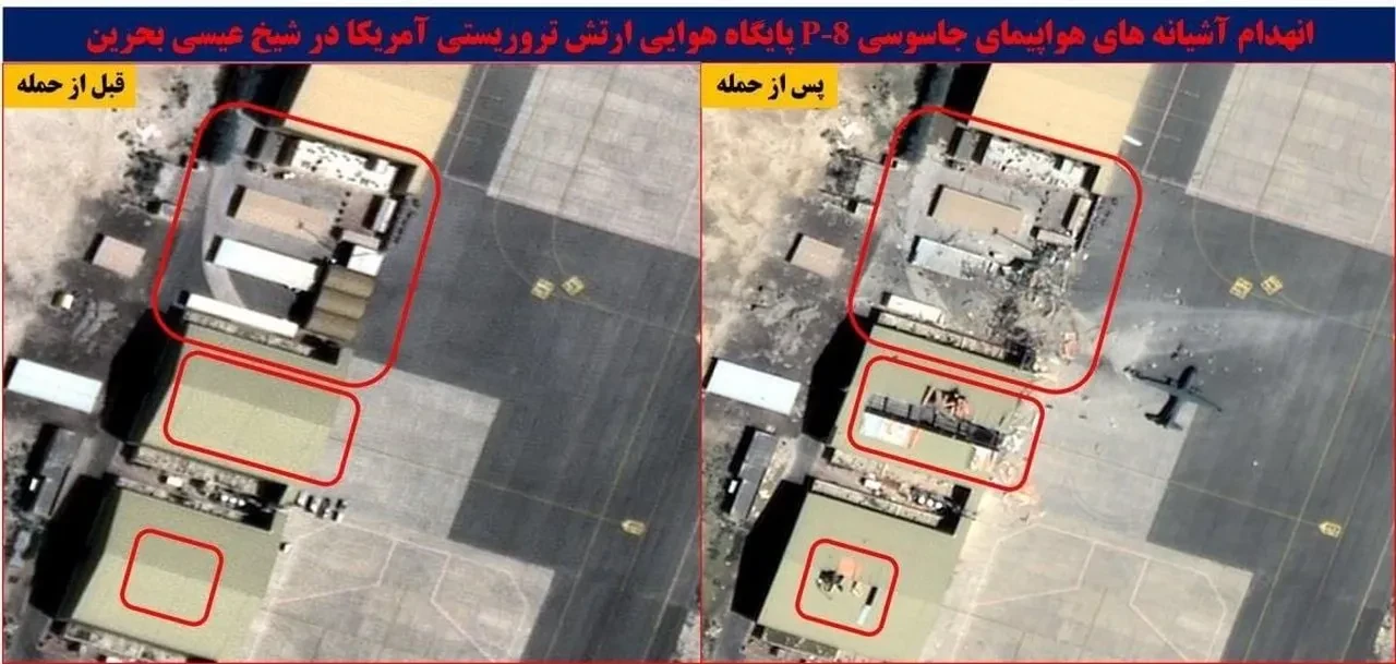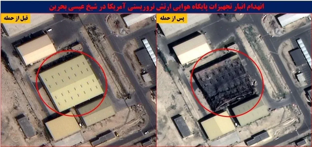 İran medyasında, Devrim Muhafızları Ordusunun Bahreyn'e füze saldırılarında isabet alan ABD üssüne ait uydu görüntüleri paylaşıldı. Fars Haber Ajansı, Bahreyn'deki ABD'nin Şeyh İsa Hava Üssü'nün görüntülerinin yer aldığı öne sürülen fotoğrafları yayımladı. Saldırıdan öncesi ve sonrasına ait uydu görüntülerinde bazı hangar ve yapılarda meydana gelen hasar yer alıyor.