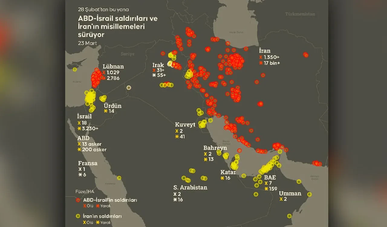 ABD, İsrail ve İran savaşının sona ermesi için birçok ülke arabuluculuk için harekete geçti. ABD Başkanı Donald Trump, ABD'li yetkililerin, İran ile görüşmeler yaptığını ve görüşmelerin olumlu bir seyirde olduğunu söyledi. İran ise bu görüşmelerin hiçbir zaman gerçekleşmediğini öne sürdü. ABD ve İran arasındaki müzakere belirsizliği sürerken Trump, 5 gün boyunca enerji altyapılarının hedef alınmayacağına dair açıklamalarda bulundu. İran'ın çevre ülkelerde ABD üslerini ve enerji kaynaklarını hedef aldığı misilleme saldırıları ise devam ediyor.