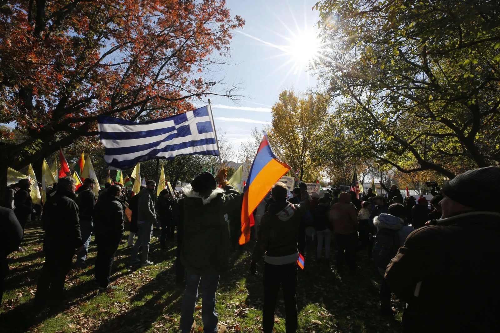 Amerika Ermeni Ulusal Komitesi (ANCA), tarafından öncülük edilen protestoya, PKK sempatizanlarının yanı sıra Ermeni Gençlik Federasyonu ve PKK'ya verdiği destek ile bilinen Demokrasi İçin Amerikan Rojava Merkezi (ARCDEM) gibi gruplar da katıldı.