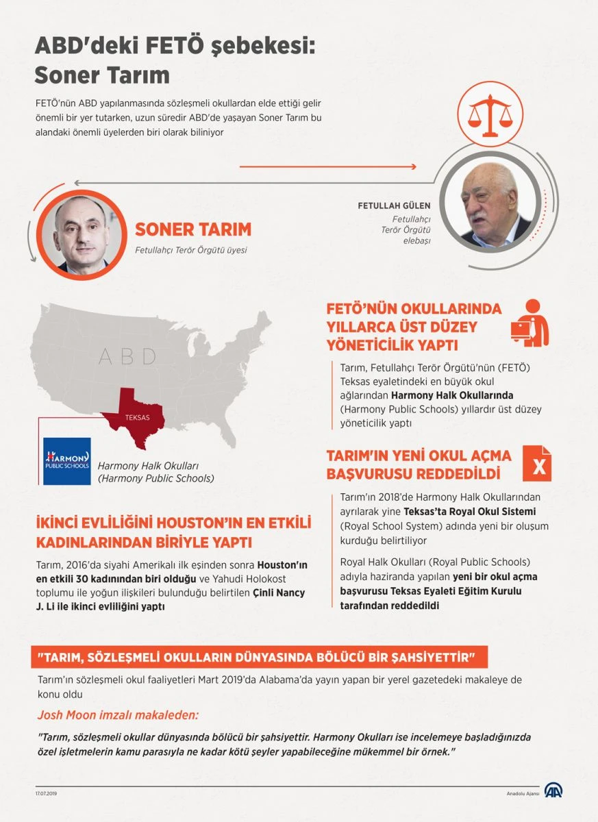 FETÖ'nün Teksas'taki en büyük okul ağlarından Harmony Public Schools'ta da üst düzey yöneticilik yapan Tarım'ın, bu okuldan yüzde 15 pay alacak olması, Alabama'da bölge halkı ve basın tarafından sıkça dile getirildi.