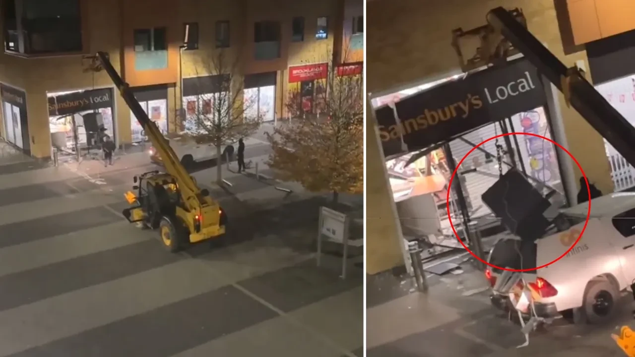 Olayı gören çevredeki sakinler tarafından çekilen videolarda, ağır makinenin mağazayı biçerek Atm'yi çıkardığı ve mağaza önünde büyük hasara yol açtığı görüldü. Çalınan ATM daha sonra havaya kaldırıldı ve bir aracın arkasına konuldu.