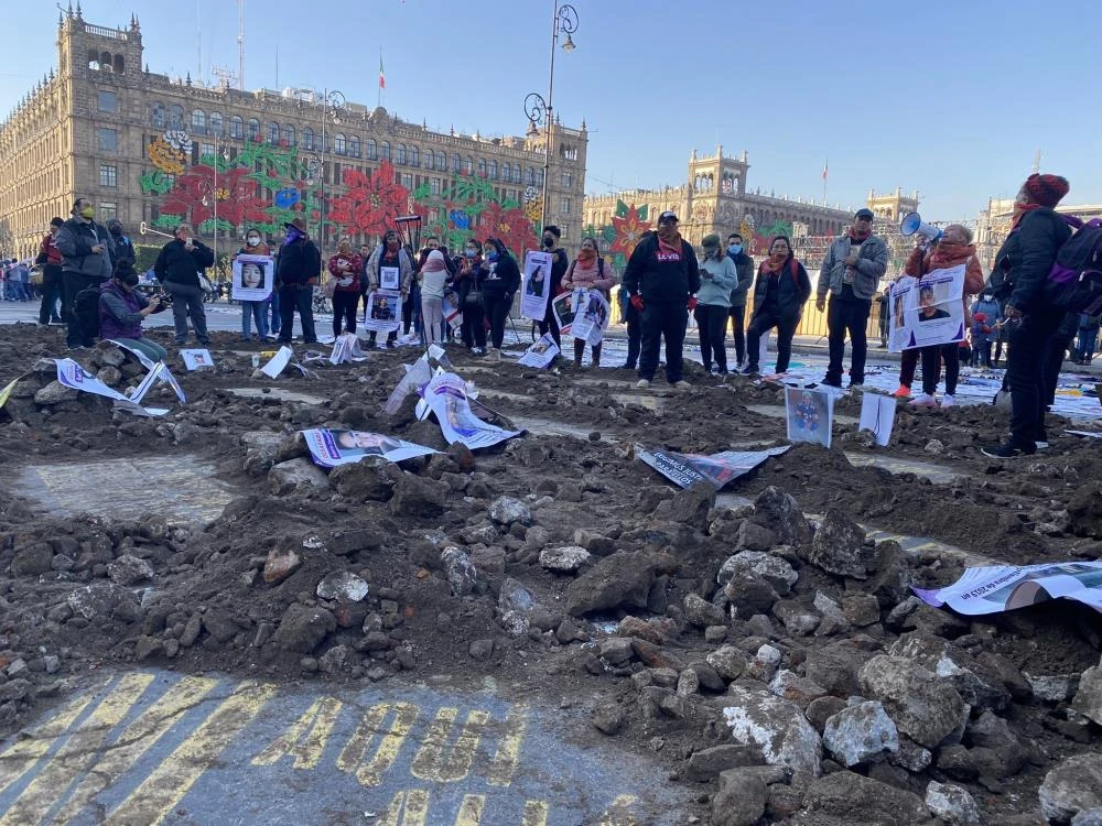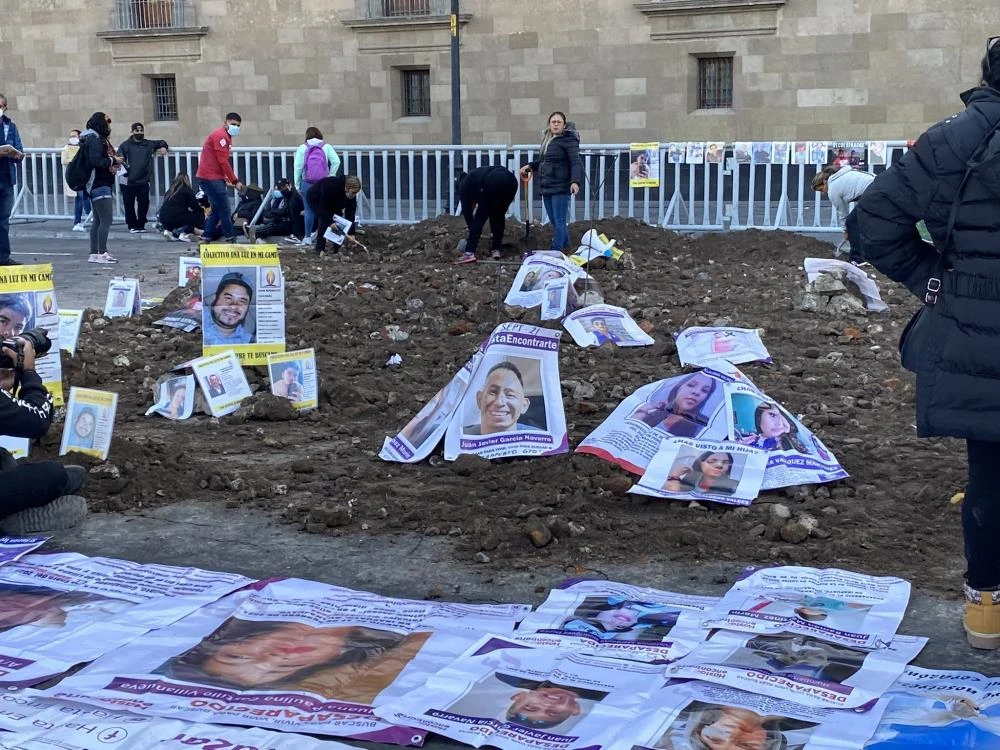 Devlet Başkanı Andres Manuel Lopez Obrador’dan yakınlarının bulunmasını isteyen göstericiler, Başkanlık Sarayı'nın önüne kamyonla getirdikleri toprağı dökerek, yakınlarının fotoğraflarını ve eşyalarını toprağın üzerine yerleştirip temsili mezarlar kurdu.