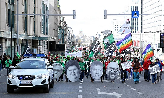 Belçika'da sendika üyesi sağlık ve sosyal hizmet sektörü çalışanlarının protestosu, sabah saatlerinde Brüksel Nord Tren İstasyonu'nda başladı.