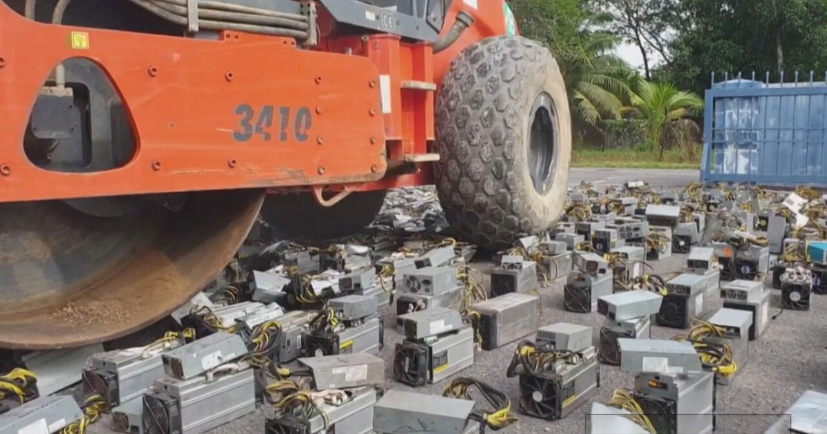 Kripto para madenciliği için yüksek miktarda elektrik tüketen cihazlar, Miri kentindeki polis karakolunun otoparkına yerleştirildikten sonra buharlı silindirle ezildi. Polis yetkilileri, madencilik için 2 milyon dolarlık kaçak elektrik kullanan sekiz kişinin de tutuklandığını duyurdu. Altısı elektrik çalmaktan suçlu bulunarak, altı ay hapis ve para cezasına çarptırıldı.