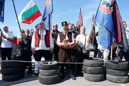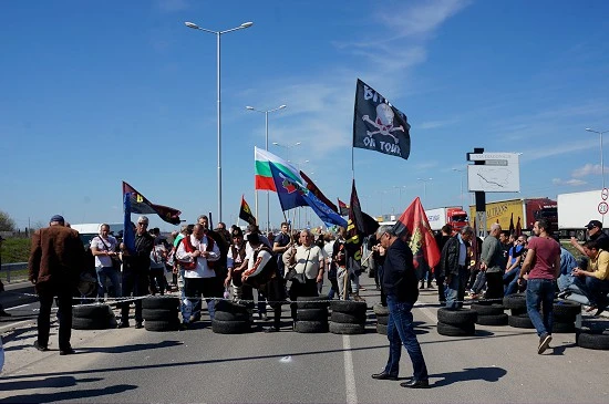 Ellerinde Bulgaristan bayrakları taşıyan ve aralarında yerel kıyafetlilerin de bulunduğu grup, Kapıkule Sınır Kapısı karşısındaki Kapitan Andreevo Sınır Kapısı çıkışındaki yolu, otomobil lastikleri ve zincirlerle kapattı.