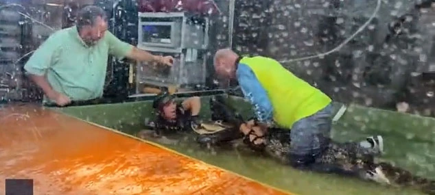 O anlarda çocuklar hemen dışarı çıkarılsa da ilk anlara tanıklık edenler ağlamaya başladı. Bir kişi, o anları kayda alırken bir başka görevli, timsahın kaptığı bakıcıya yardım etmek için timsahın üzerine atladı.