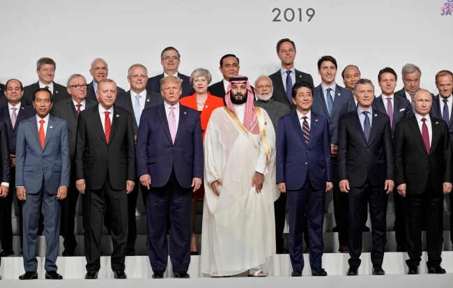 G20 Zirvesi'nin Dönem Başkanı ve Japonya Başbakanı Şinzo Abe, toplantı başlamadan önce zirvenin gerçekleştirildiği INTEX Osaka Fuar Merkezi alanında liderleri tokalaşarak karşıladı.