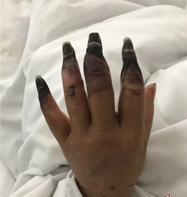 Daha sonra yaranın çevresindeki morluğun, sol elindeki başparmağı ve sağ elindeki serçe parmağı dışındaki tüm parmaklarına yayılması üzerine doktora giden Çinli kadın, morlukların ve çürümenin oluştuğu 8 el parmağında birden kangren meydana geldiğini öğrendi.