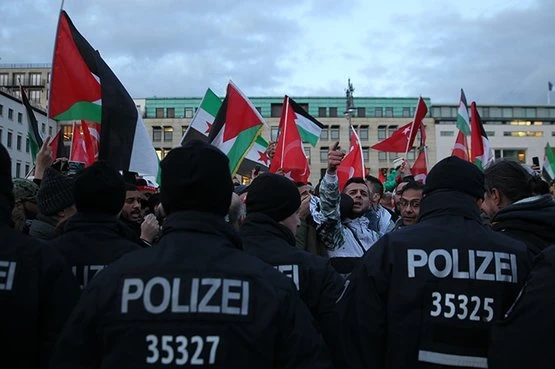 Filistinli gruplar tarafından Frankfurt'ta düzenlenen gösteride, protestocular Merkez Tren İstasyonu civarında bir araya gelerek yürüyüşe geçti.ABD'nin kararına tepki gösteren protestocular, daha sonra Kaiserstrasse Caddesi üzerinden Rossmarkt Caddesi'ne kadar yürüdü.