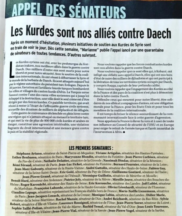 Türk Silahlı Kuvvetleri'nin durdurulması için imza toplamaya başlayan Fransız siyasetçiler, bölge ateş altına alınan grupların müttefikleri olduğuna vurgu yaptı.