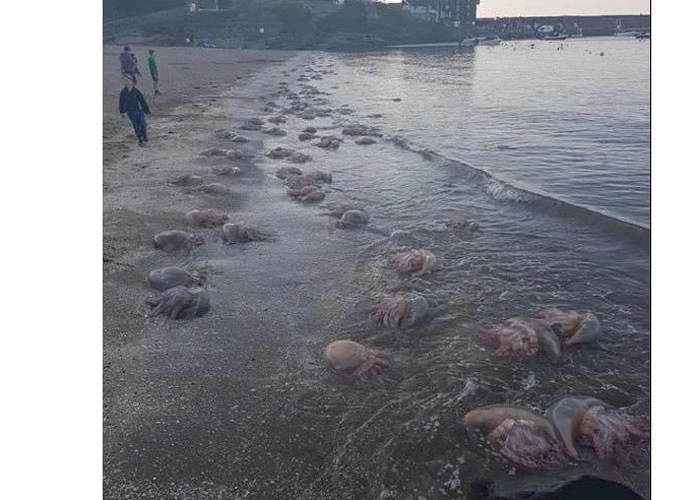 Binlerce devasa denizanası… Birleşik Krallık’ın Pembrokeshire kıyı şeridinde her biri yaklaşık 35 kilogram ağırlığında ve yaklaşık 35 santimetre çapında deniz canlıları korkuttu.