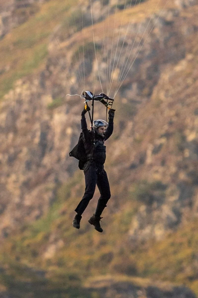 İngiltere Galler'de çekimleri devam eden Görevimiz Tehlike 7 filminin çekimleri esnasında Tom Cruise'un 4 kez paraşütle helikopterden atlaması gerekti. 59 yaşındaki usta oyuncunun paraşütle atlama sahnelerinin çekimleri sırasında çevresinde drone'lar uçtu.