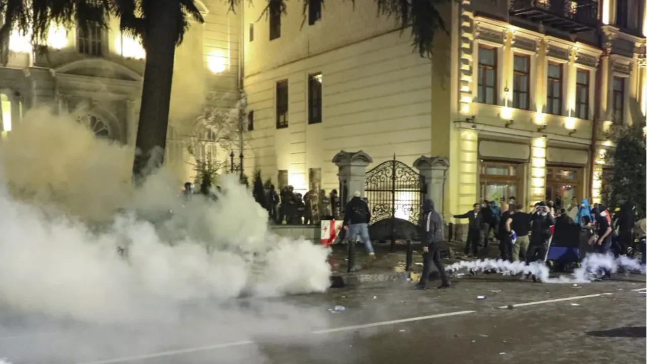 Yerel seçimlerin gerçekleştirildiği Gürcistan’da hükümet karşıtı on binlerce protestocu sokakları doldururken, polis Cumhurbaşkanlığı Sarayı yerleşkesine girmeye çalışan göstericilere biber gazı ile müdahale etti.