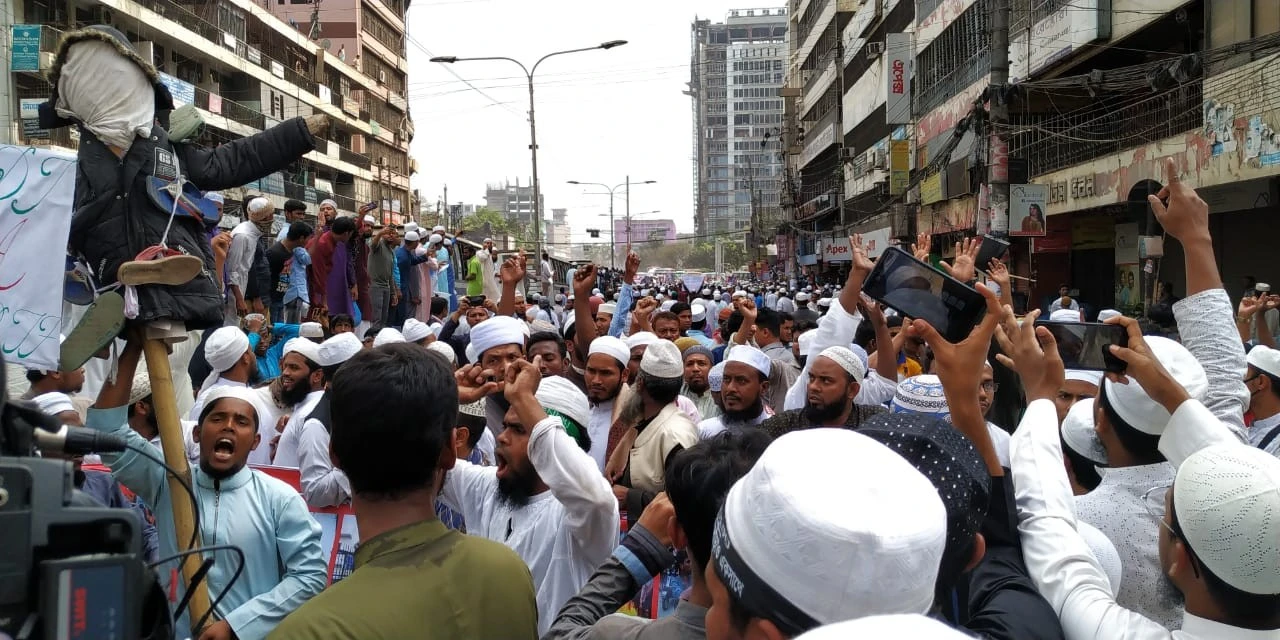 Dün cuma namazından sonra ülke genelinde camilerde protesto eylemi düzenlenirken, bugün de başta Dakka olmak üzere birçok şehirde siyasi partiler, sivil toplum kuruluşları ve halk bir araya gelerek Narendra Modi’yi protesto etti. Göstericiler, ‘Modi terörist’, ‘Modi insanlık düşmanı’ sloganları attı.