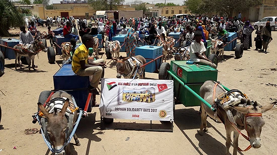 İnsan Hak ve Hürriyetleri (İHH) İnsani Yardım Vakfı, Sudan'daki yetimlere, "funtas" adı verilen su arabalarından dağıttı.
