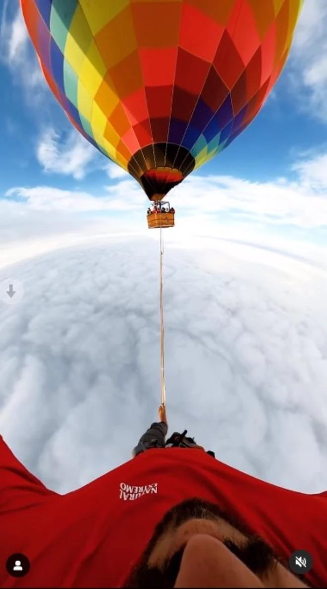 İki balon arasındaki ipte bulutlarla bütünleştiği anda yüksek konsantrasyona halinde olduğunu dile getiren Bridi, oradayken ne düşündüğünü hatırlamadığını belirtti.