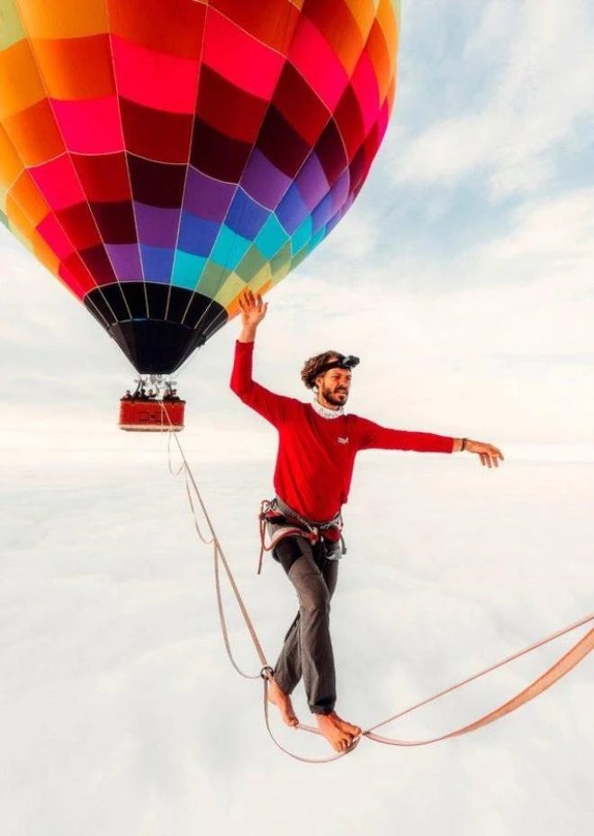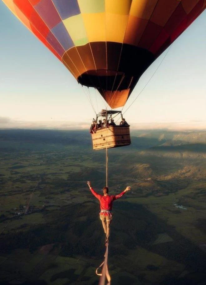 Brezilyalı Rafael Zugno Bridi, iki sıcak hava balonu arasına bağlanan gergin bir ip üzerinde yürümeyi başardı. Yerden bir milden fazla yükseklikte, özgürlük ve süzülme hissini yaşayabilmek için hayatını tehlikeye atan Bridi, dünya rekorunu kırdı. Genişliği yalnızca 2.54 cm olan ip üzerinde yürüyen Bridi, zorlukları sevdiğini şu sözlerle ifade etti: