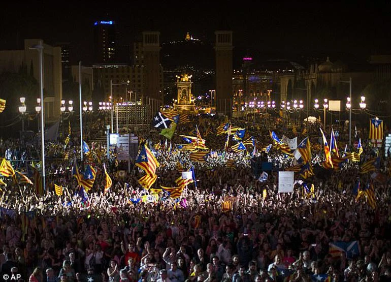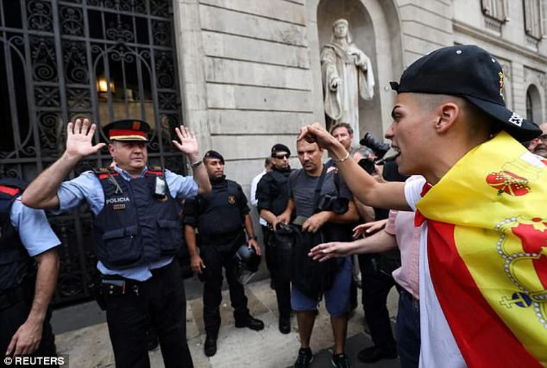 14.10 - Madrid'in merkezindeki Plaza Mayor ve Puerta del Sol'da referandum karşıtları toplandı. Topluluk, "Ben İspanyol'um, İspanya birdir, bölünemez" şeklinde sloganlar attı.