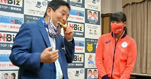 Geçtiğimiz hafta Miu Goto ve takımı, Tokyo 2020’de softbol branşının 27 Temmuz'da oynanan finalinde karşılaştığı ABD'yi 2-0 mağlup etmişti. Goto, takımın başarısını kutlamak için geçtiğimiz günlerde düzenlenen etkinliğe katılmak üzere doğduğu kent olan Nagoya’ya ziyaret gerçekleştirmişti. Kutlamalara Nagoya Belediye Başkanı Takashi Kawamura da katılmıştı. Kutlamalar sırasında maskesini indiren Takashi, altın madalyayı ısırmıştı.