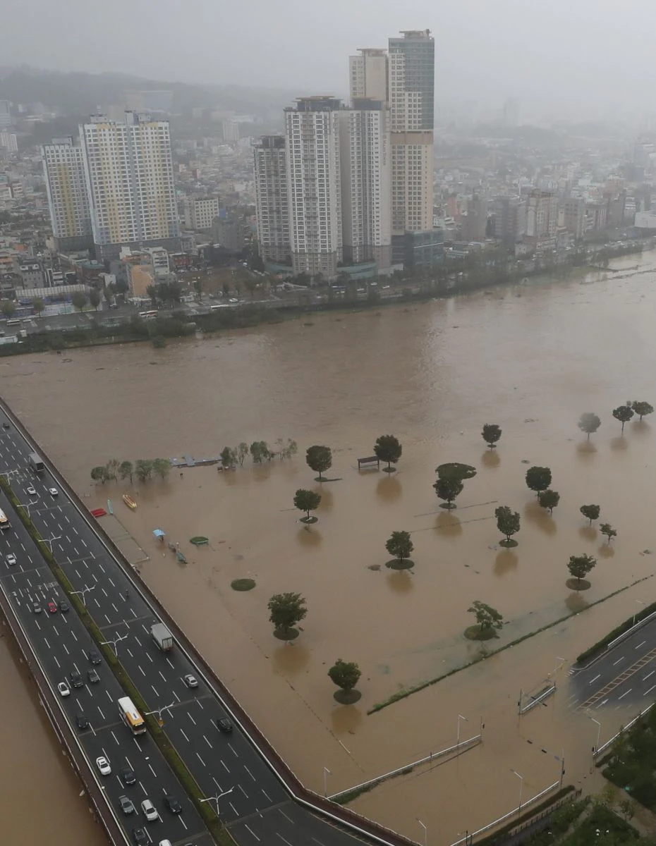 İçişleri ve Güvenlik Bakanlığı tarafından yapılan açıklamada, sel felaketinin de meydana geldiği ülkenin en büyük ikinci şehri Busan'da şiddetli rüzgarların araçları devirdiği ve en az 1 kişinin yaralandığı bildirildi.