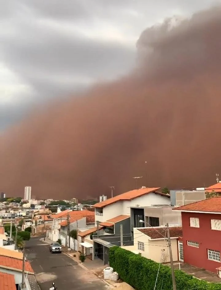 Brezilya’da Pazar günü Sao Paulo eyaletindeki Presidente Prudente, Franca, Jales, Araçatuba, Barretos şehirlerinde ve Minas Gerais eyaletinin bazı bölgelerinde etkili olan kum fırtınası nedeniyle oluşan toz bulutu sokakları karanlığa çevirdi.