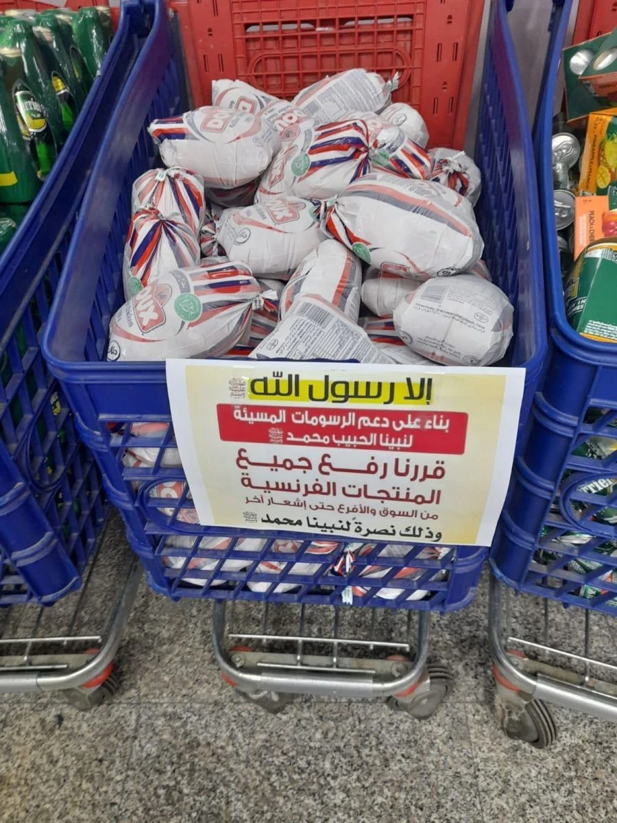 Kuveyt’teki marketler ise bütün Fransız ürünleri toplayıp depolara göndererek ürünlerin satışını durdurdu. Ülkede Fransız ürünlerinin satıldığı raflara “Fransız ürünleri yok”, “Boykot” ve “Hazreti Muhammed'e hakaret içeren karikatürlerini kınıyoruz” şeklinde yazılar asıldı.