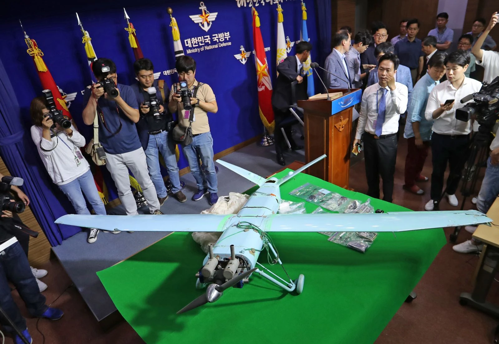 Güney Kore düzenlediği basın toplantısıyla insansız hava aracının görüntülerini dünyayla paylaştı. Yetkililerden yapılan açıklamada insansız hava aracının Kuzey Kore'ye dönerken ABD'ye ait füze savunma sisteminin fotoğraflarını çeken bir kamerayla bulunduğu belirtildi.