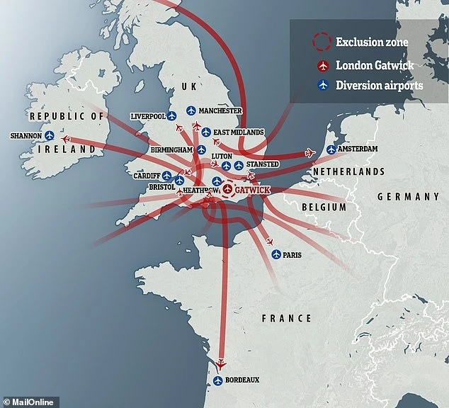 Yetkililer, Gatwick'e inemeyen uçakların Londra'daki Heathrow ve Luton havalimanlarının yanı sıra yoğunluk nedeniyle Manchester, Cardiff, Paris ve Amsterdam'a da yönlendirildiğini söyledi.