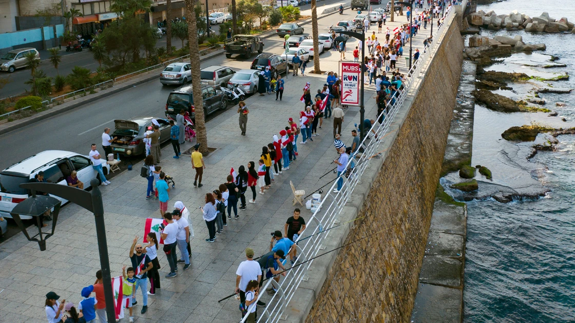 Sosyal medya aktivistleri tarafından "El ele" sloganıyla başlatılan gösteriler çerçevesinde, ülkenin güneyinde Şiilerin çoğunlukta olduğu Sur kentinden kuzeyde yer alan ve Sünnilerin çoğunlukta olduğu Trablusşam kentine kadar onbinlerce kişi el ele tutuşarak yaklaşık 170 kilometrelik insan zinciri oluşturdu.