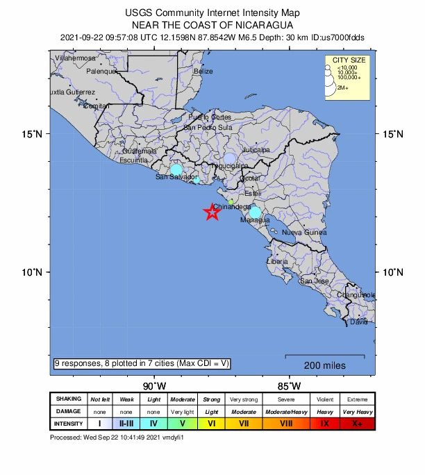 ABD Jeolojik Araştırma Merkezi’nden (USGS) yapılan açıklamaya göre, Nikaragua’nın Jiquilillo kentinin 78 kilometre güneybatısında yerel saatle 09.57’de 6.5 şiddetinde deprem meydana geldi.