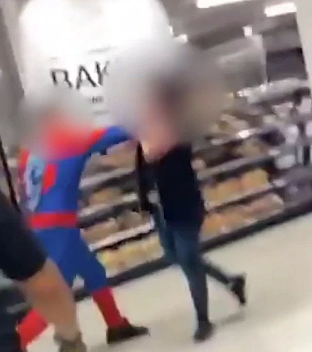 Yine örümcek adam kıyafeti giymiş bir kişi ise bir kadın personeli, yumruklarıyla yere yığıp diğer çalışanlara saldırıyor. Ardından da tekerlekli sandalyedeki adamın kafasına ağır bir cisimle vuruyor. Markettekiler neye uğradıklarını şaşırırken saldırganlar küfürlerle etrafa dehşet saçmaya devam ediyor, giderek şiddetlenen saldırı, marketin içinden depoya taşınıyor. Saldırganlar o anlarda güvenlik görevlilerine de sopa ve yumruklarla vuruyor.