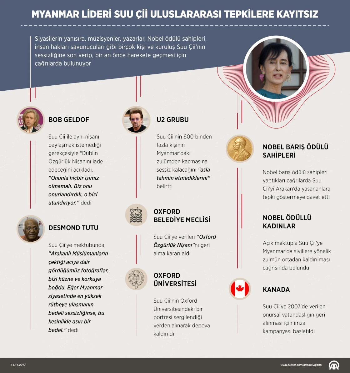 Belediye Meclisinden yapılan açıklamada, Myanmarlı siyasetçinin Arakanlı Müslümanlara karşı işlenen insanlık suçuna sessiz kalması nedeniyle nişanın geri çekilmesi konusunda ekim ayında oy birliğiyle karar alındığı hatırlatıldı ve nişanın bugün resmen geri alındığı bildirildi.Açıklamada, bu nişanın Suu Çii'ye 1997 yılında Oxford'un hoşgörü ve çok ulusluluk değerlerini yansıtmasının yanı sıra Myanmar'da verdiği demokrasi mücadelesi nedeniyle verildiği, ancak bugün azınlıktaki Arakanlı Müslüman nüfusunun baskı altına alınması karşısında hiçbir şey yapmadığı gerekçesiyle geri alındığı ifade edildi. "Oxford Özgürlük Nişanı", Oxford Belediye Meclisi tarafından, şehre katkısı bulunan, asker, siyaset, kültür, bilim ve sanat alanlarında üstün başarı gösteren kişilere veriliyor.